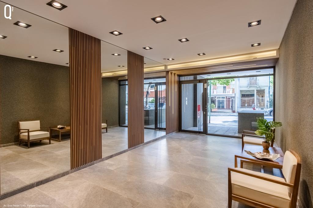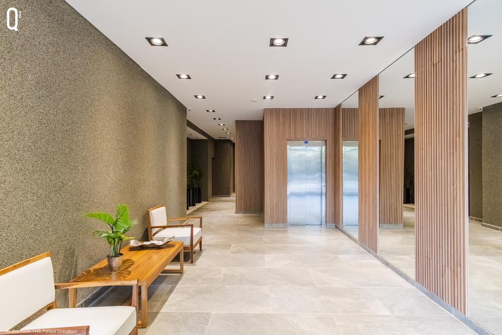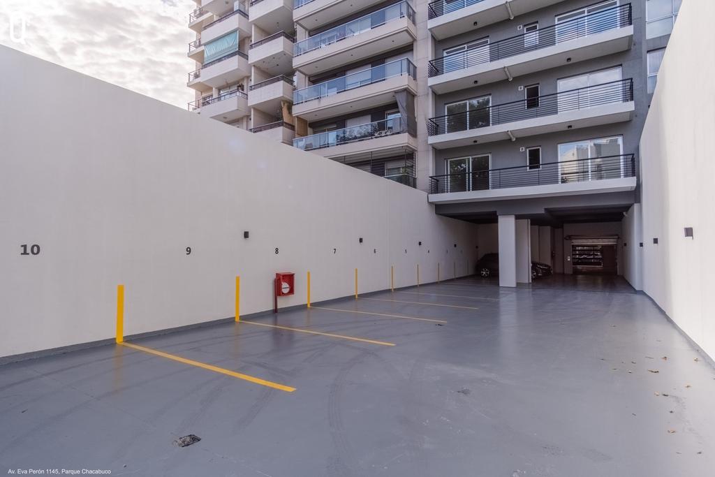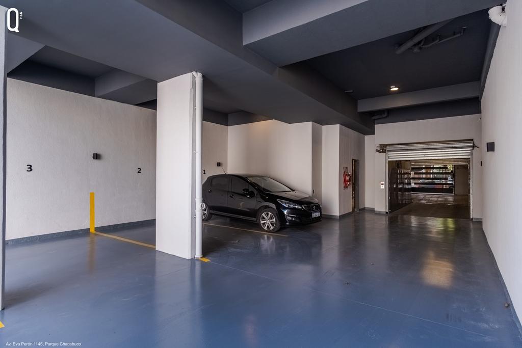 Espacios guardacoches en PB y subsuelo con acceso por monta-autos hidráulico, portón levadizo de apertura automática en PB. 2 ascensores, cabina revestida en acero con motor de frecuencia variable y puertas de apertura automática en todos los pisos.